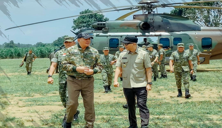 Gubernur Mirza Dampingi Menhan RI Tinjau Fasilitas Markas Komando Batalyon Infanteri TP 848/Satya Pandya Cakti Anak Tuha