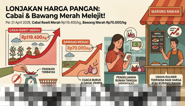 Lonjakan harga bahan pangan di pasar domestik kembali mencuat. Pada tanggal 21 April 2026, harga cabai rawit merah telah mencapai Rp119.400 per kilogram, sementara harga bawang merah berada di angka Rp70.000 per kilogram. Kenaikan harga yang signifikan ini menjadi sorotan karena berdampak langsung pada pengeluaran rumah tangga dan sektor usaha kuliner yang sangat bergantung pada kestabilan harga bahan baku.